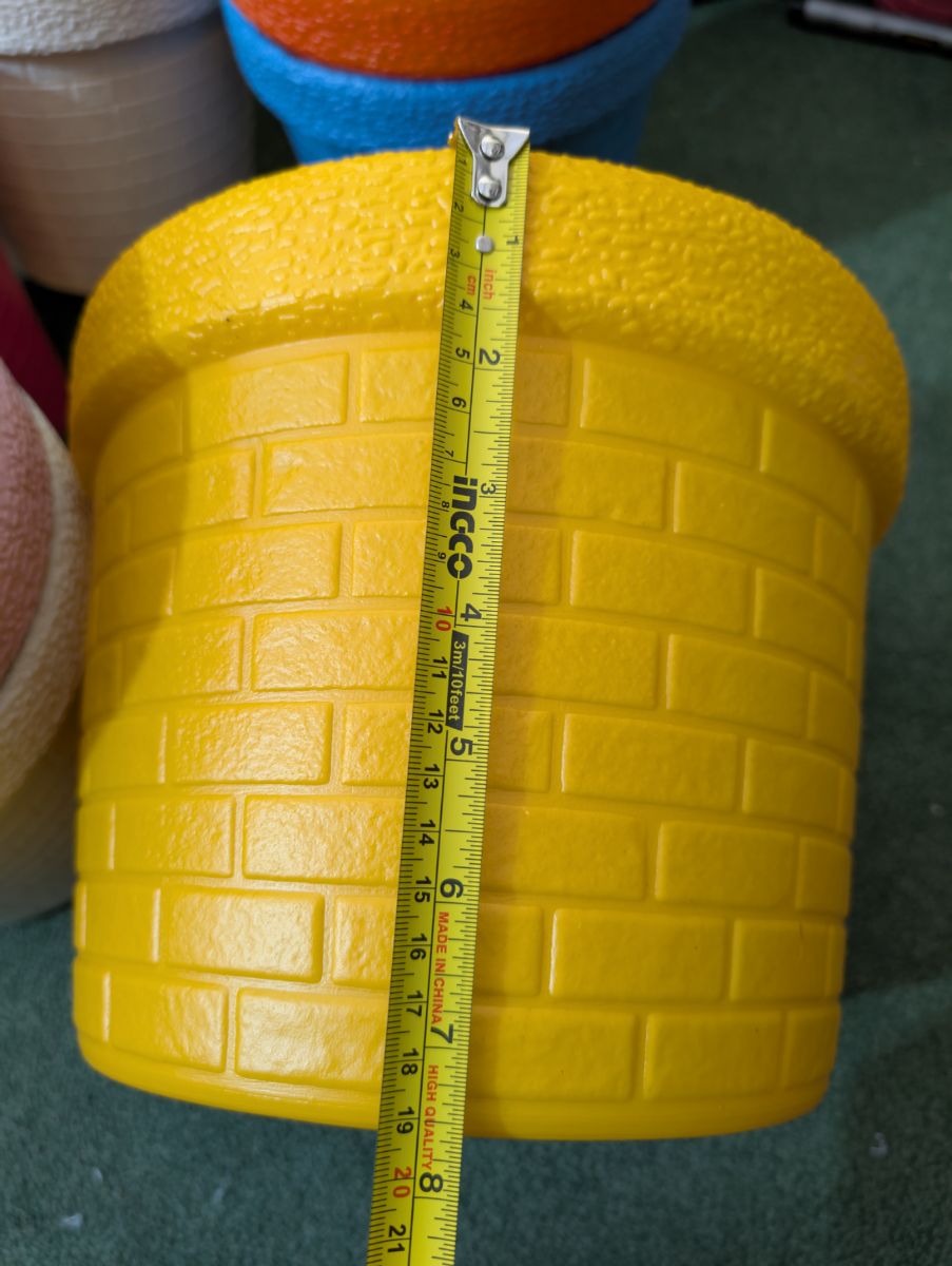 Elevate your plant game with this eye-catching round planter, featuring a unique dual-texture design. The body showcases a classic embossed brick pattern, while the wide rim offers a rugged, stone-like finish for easy gripping and extra style. Molded from lightweight, durable plastic, this pot is perfect for indoor houseplants or outdoor patio floral displays.
