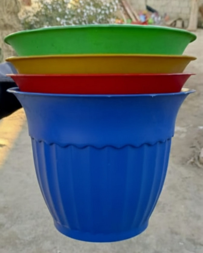 4 Non breakable 8 inches brick design pots set | Mix colors