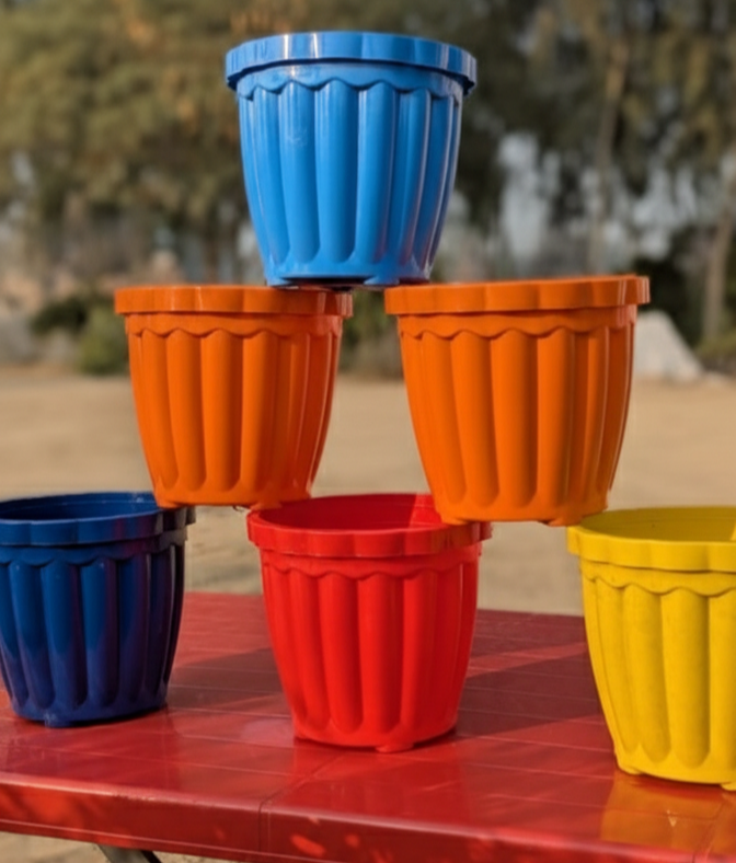 6 Brick Design 6 inches, non breakable pots set | mix colors
