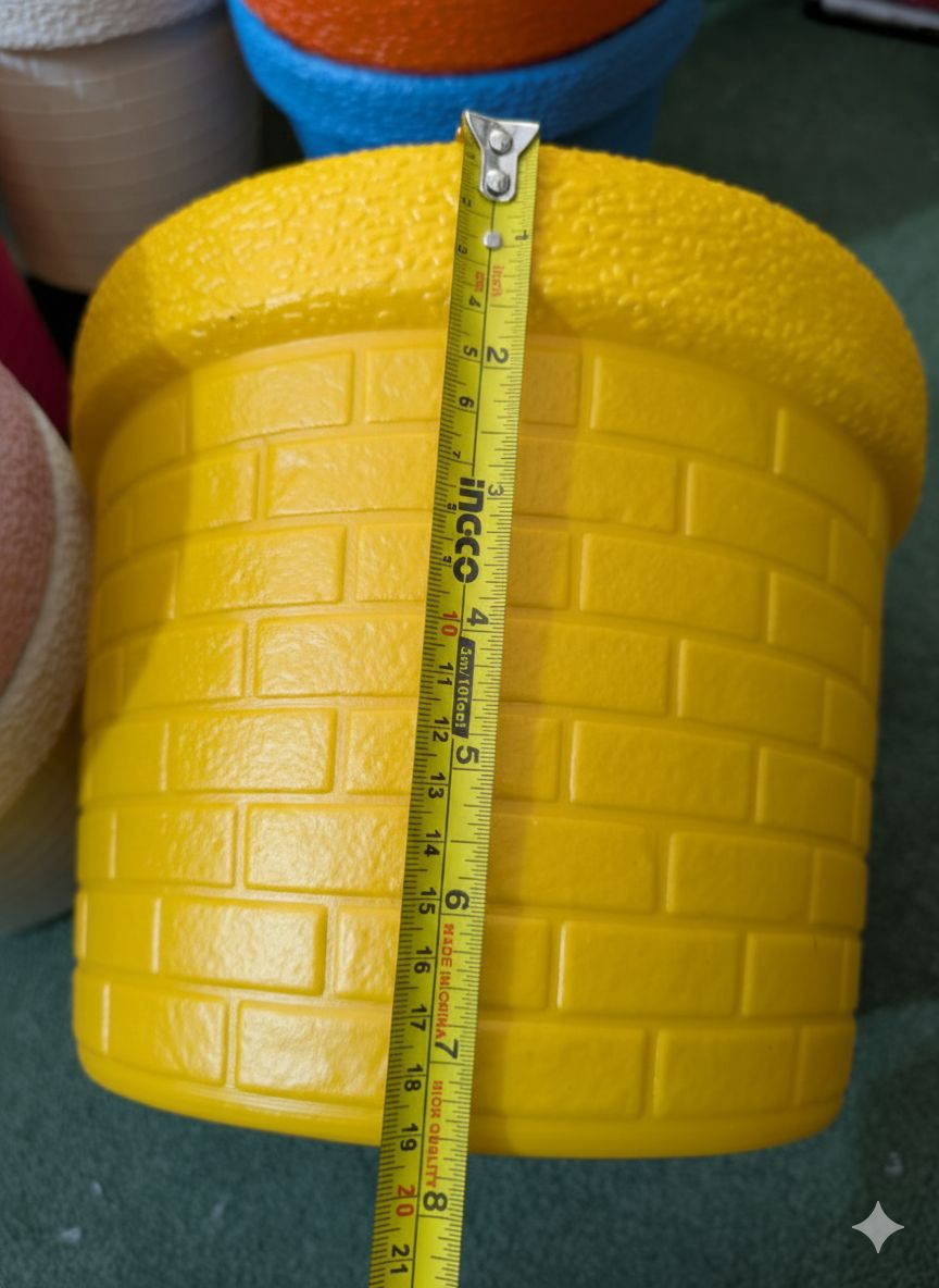 Textured Brick-Pattern Round Garden Pot Elevate your plant game with this eye-catching round planter, featuring a unique dual-texture design. The body showcases a classic embossed brick pattern, while the wide rim offers a rugged, stone-like finish for easy gripping and extra style. Molded from lightweight, durable plastic, this pot is perfect for indoor houseplants or outdoor patio floral displays.